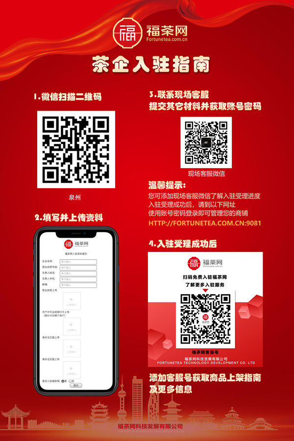 請各位茶企、家庭農(nóng)場、合作社于7月13日(下周二)準(zhǔn)備好入駐材料至德化縣工信商務(wù)局三樓會議室辦理福茶網(wǎng)企業(yè)入駐手續(xù),聯(lián)系人:蘇文源,18850444802