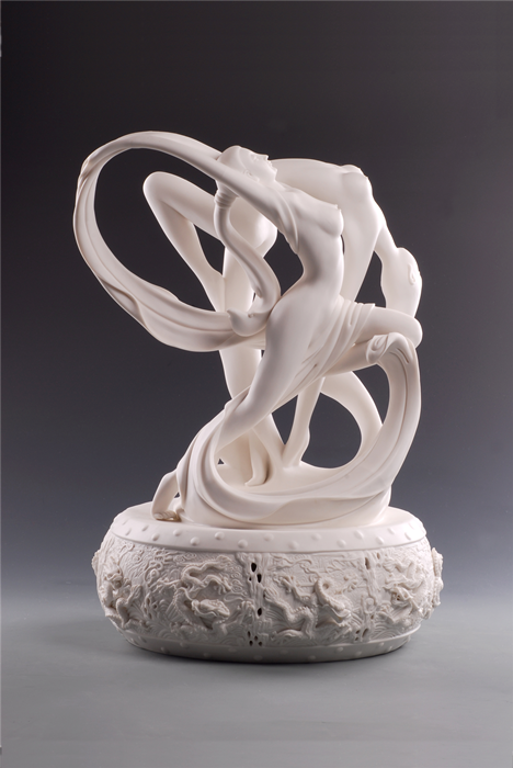 多寶堂陶瓷藝術創作,倡導“形以達意,質以達形。”一方面注重內容與形式的創新,讓形體具有時代精神與現代審美價值;另一方面通過 “國寶復原·德化窯”工程數十件的館藏文物的嚴格臨摹再現,研習吸取德化窯的優秀傳統手工藝,并將典型的德化窯工藝應用于新的創作中,使創新的作品具有典型的德化窯特征。作品重視手工工藝價值表現,材質選用上等的德化白瓷原料,白瓷釉藥選用明代“豬油白”的配方原理,白中泛黃,瑩明溫潤,古樸典雅。