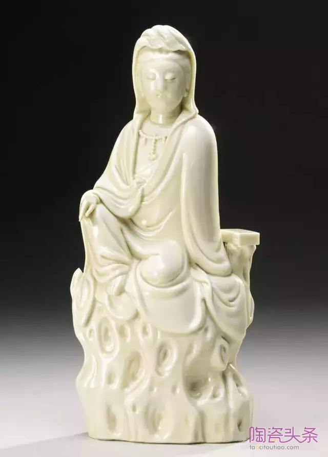 17、明代德化窯白釉“何朝宗印”款:觀音菩薩坐像