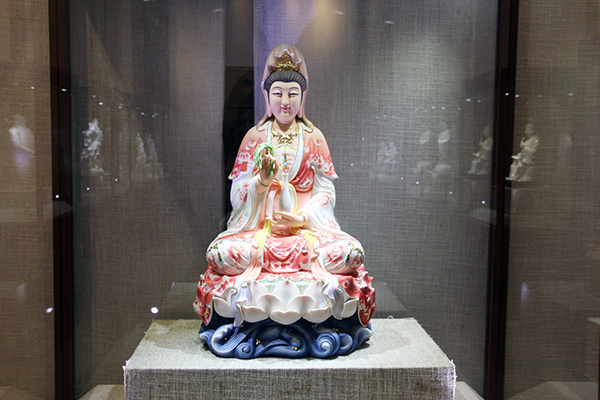于是,他決定從事加彩陶瓷創作,在白瓷雕塑的基礎上加以彩繪裝飾,并且跳脫出德化雕塑風格,吸取東北區域、馬來西亞、新加坡等佛教風格,走出一條專屬自己的瓷彩道路。他還成立了“德畫彩”品牌,以“畫”諧音“化”,既襯托地域的特性,也襯托了品牌的內涵。
