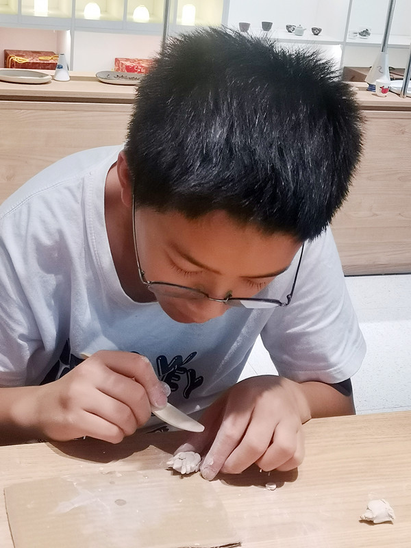 活動(dòng)上,賴瑞攀老師從創(chuàng)作一件折枝梅花入手,演示德化陶瓷工藝,分享德化特色陶瓷文化,傳播德化精湛的瓷塑工藝與潔白溫潤(rùn)的白瓷文化,提升學(xué)生與家長(zhǎng)對(duì)德化瓷的認(rèn)知。在賴瑞攀老師的指導(dǎo)下,學(xué)生們圍桌而坐,拿起泥巴,跟著老師學(xué)做雕塑,他們用泥巴創(chuàng)作出各式各樣的泥塑作品,體驗(yàn)了一把泥土的樂(lè)趣。