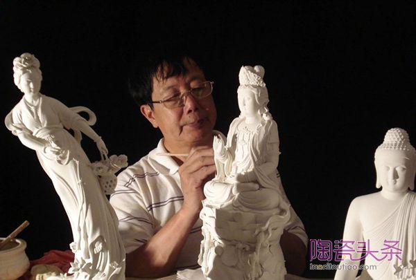 他謙虛務實,善于博采眾長。曾跑遍德化、永春、永安、三明、建陽、古田等地名剎古寺,賞鑒古今泥塑木雕風格技法;不惜資金訂閱、購置《中國古陶瓷全集》、《中國工藝美術全集》、《中國陶瓷工藝學》、《陶雅》、《飲聊齋說瓷》以及木刻、石雕、書法、繪畫等大量參考資料、圖片數百冊,不懈地閱讀,從中吸取營養;收藏德化及其他部分地區自初唐至今大量的瓷塑與陶瓷器皿,反復對其造型藝術、工藝技法與瓷質、瓷釉等的探尋、研究,從中不斷得到啟發與借鑒,吸取其精華。