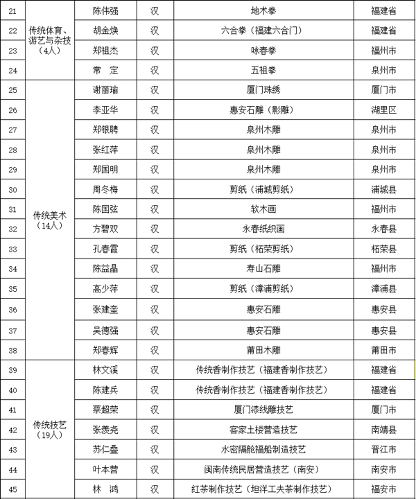 福建省第六批國(guó)家級(jí)非物質(zhì)文化遺產(chǎn)代表性傳承人推薦申報(bào)名單